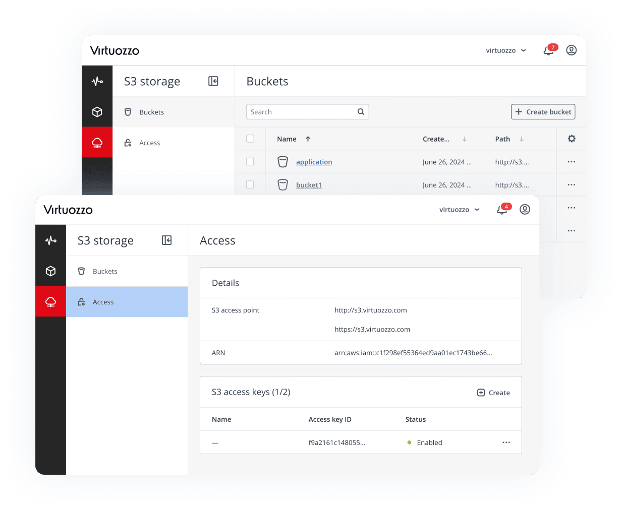 Self-service users can now manage S3 credentials, objects, and properties directly within the self-service panel, which was previously limited to compute resource management. This integration simplifies the management of S3 storage, providing a unified interface for all storage needs.